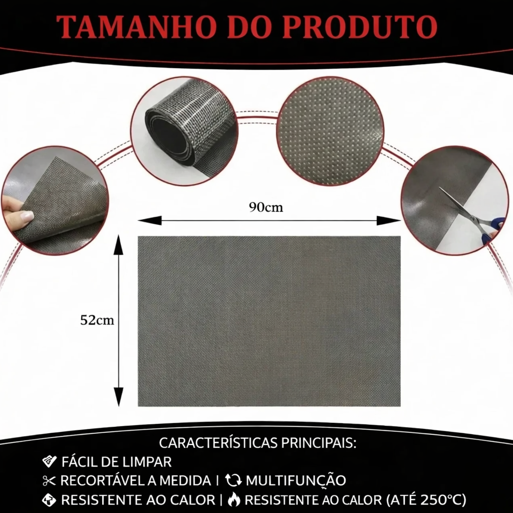 Desenvolvido especificamente para tecnologia eletromagnética. Suporta até 250 °C de calor direto, garantindo uma confeção segura, uniforme e sem odores.
